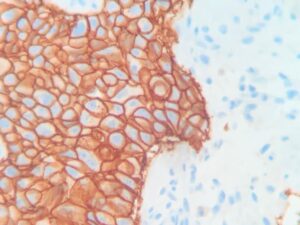HER2 positivo. Membranas con DAB (marrón).